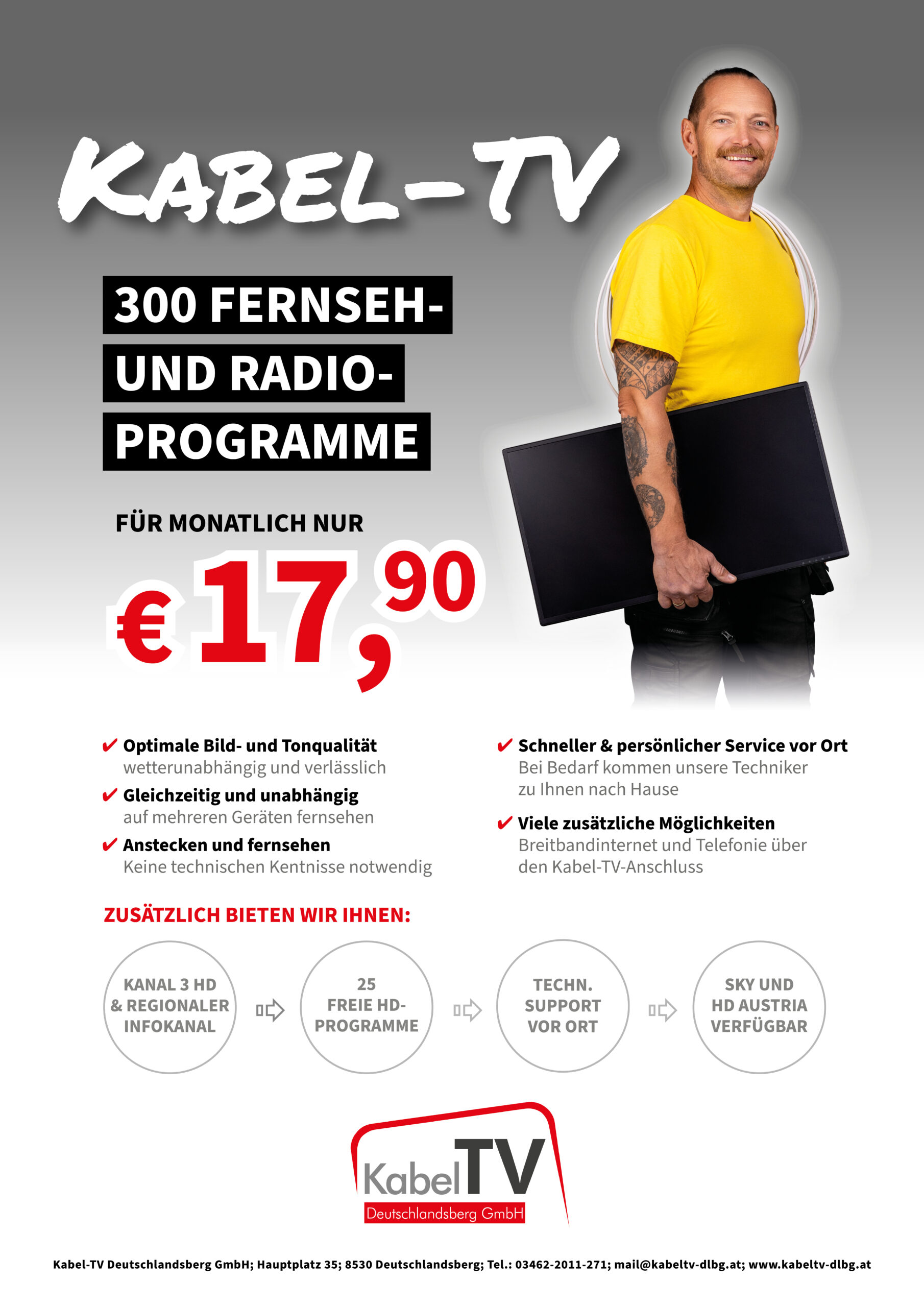 - Viele zusätzliche Möglichkeiten wie Breitband Internet und Telefonie