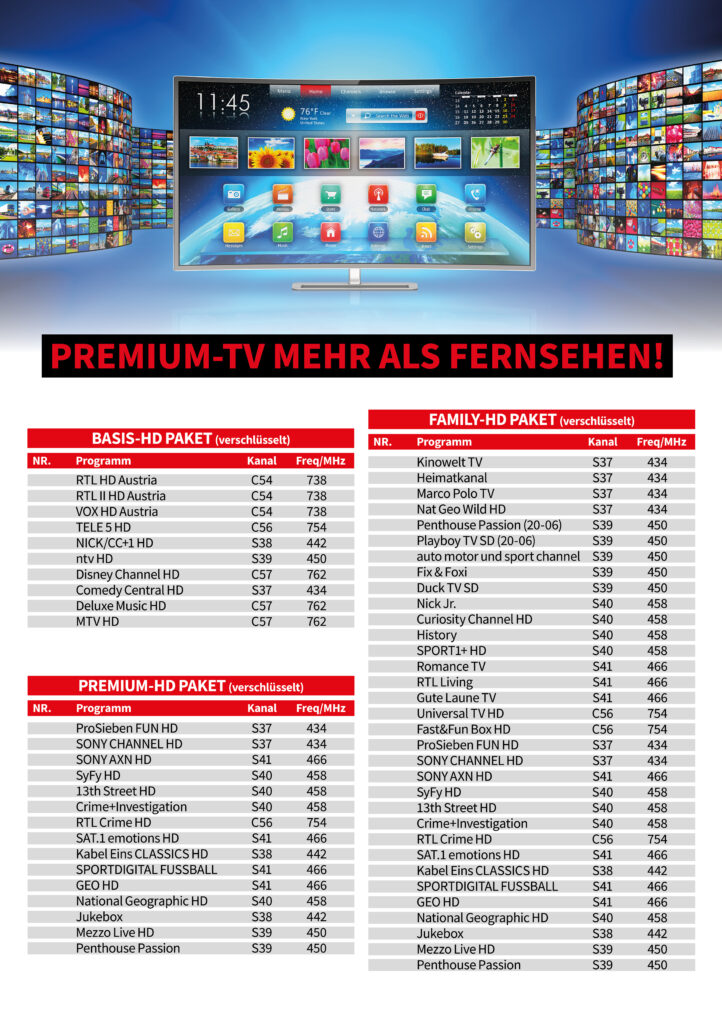 - HD-Austria und SKY Programme (gesonderte Anmeldung erforderlich)